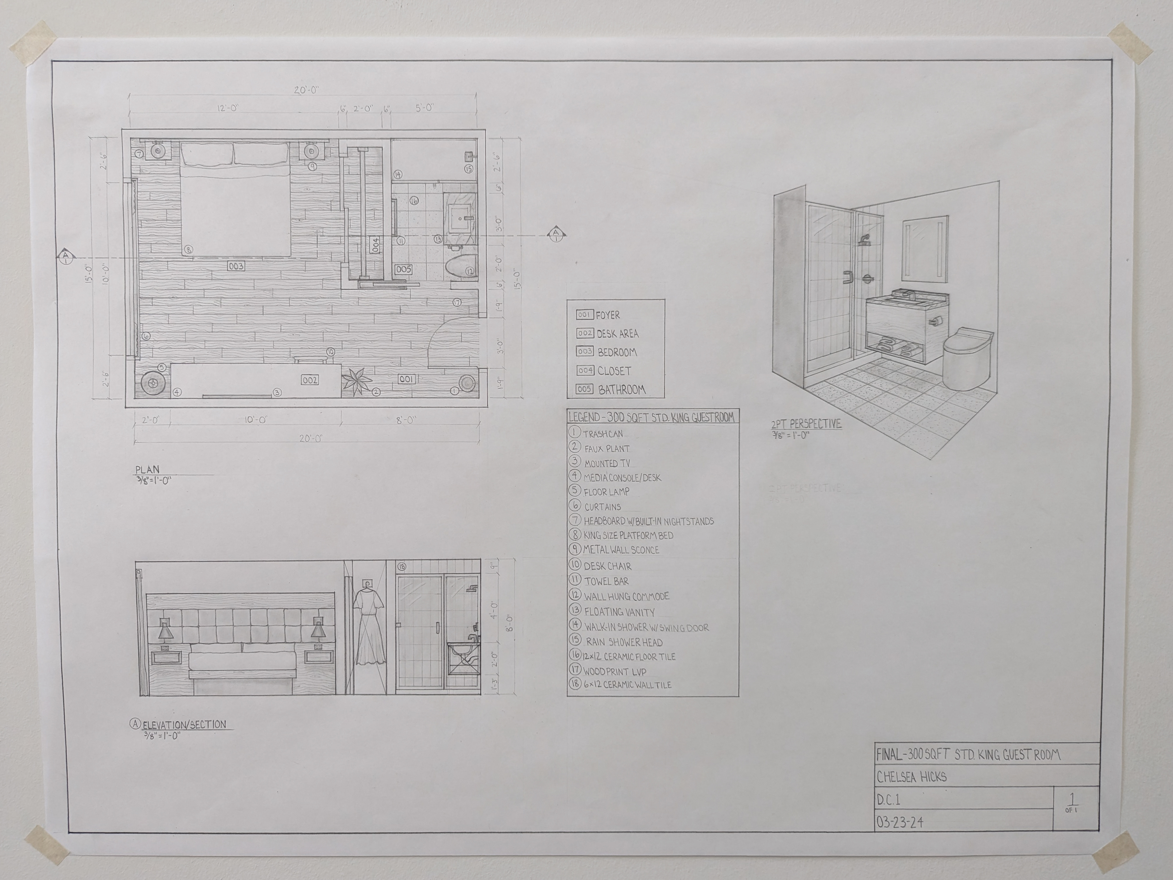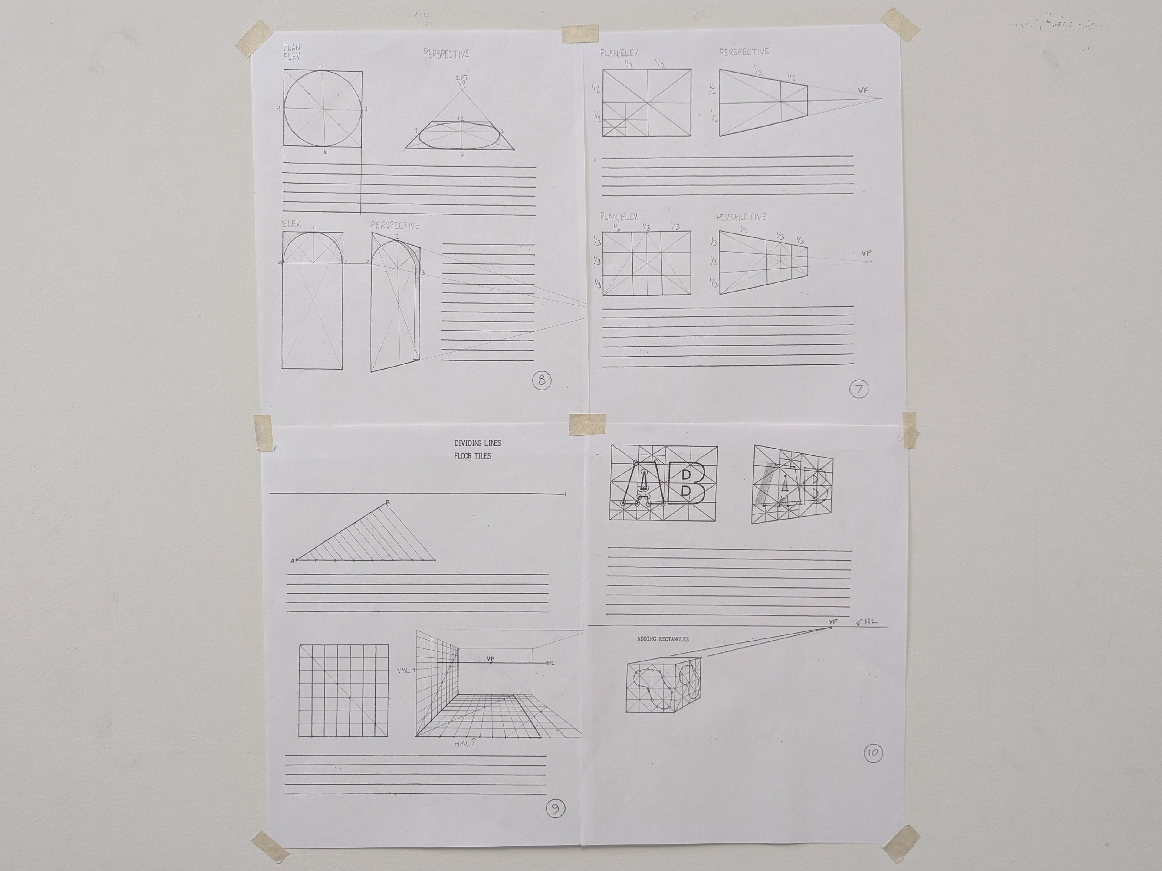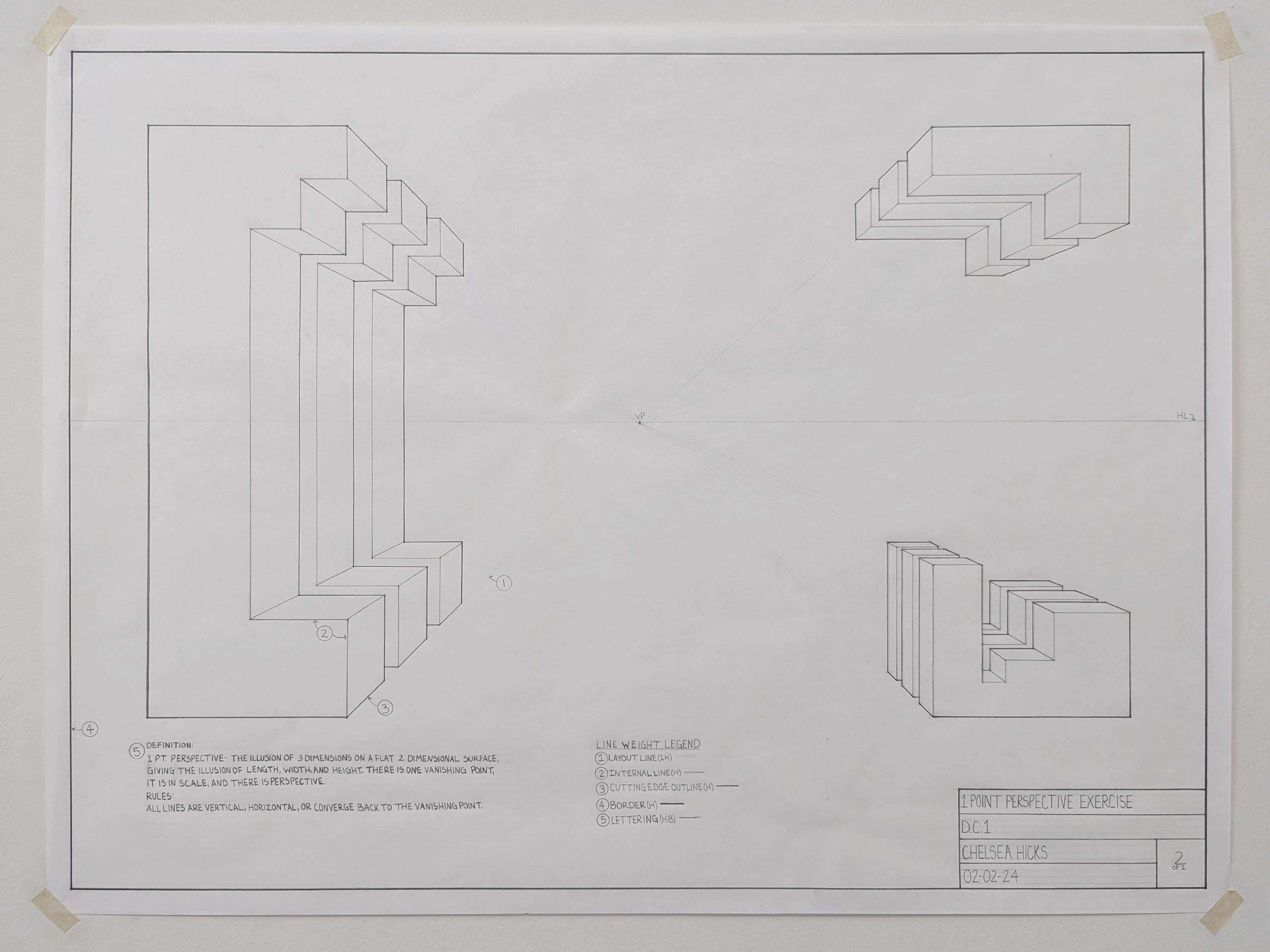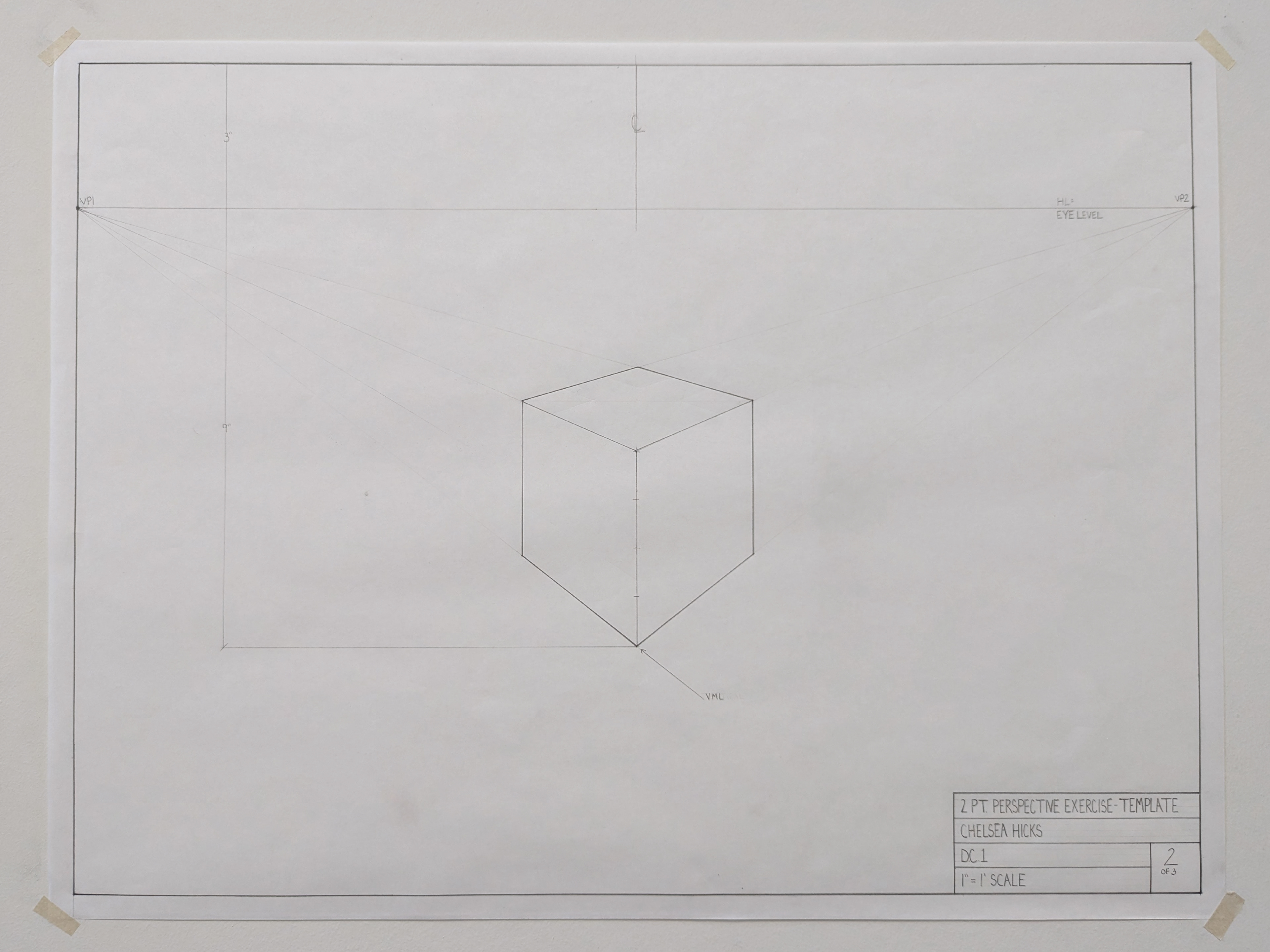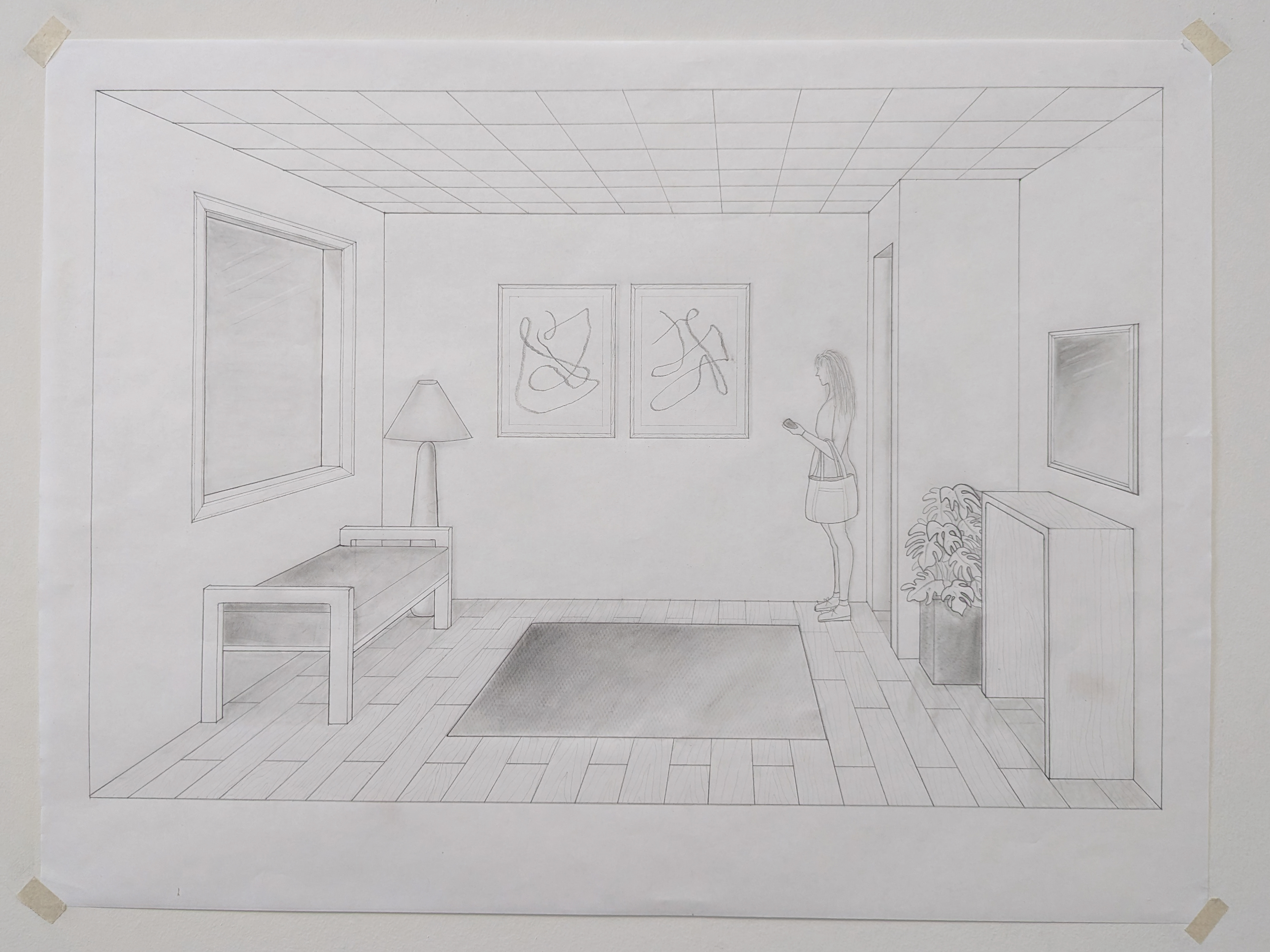 DC I was the first course in the program that taught hand drafting and drawing. The drawing are in black and white and are based on U.S. standard measurements. The exercises throughout the quarter introduced concepts such as composition, design, contour and line, proportion and scale, plan and section, perspective, form and space, as well as tone and shadows.