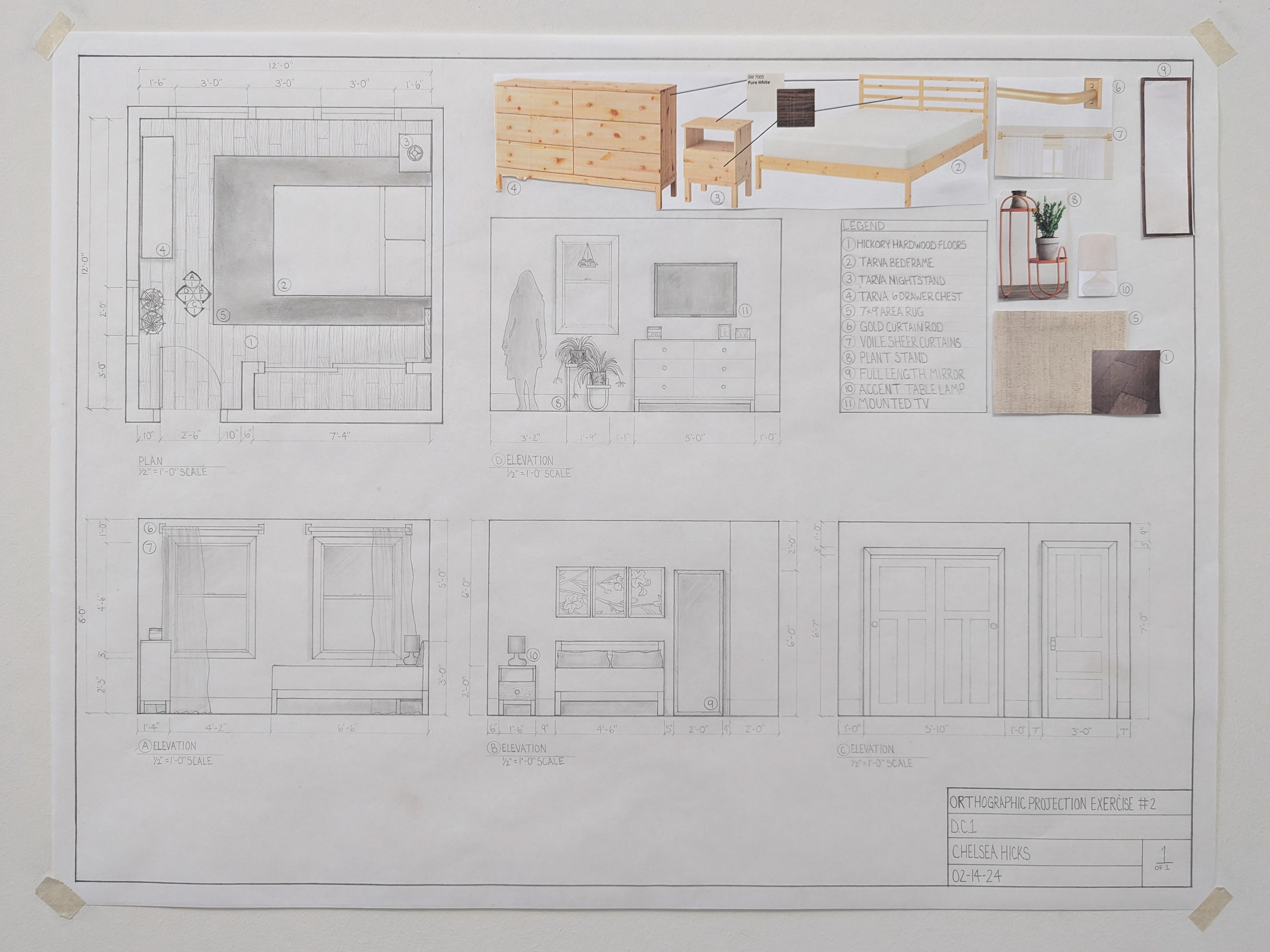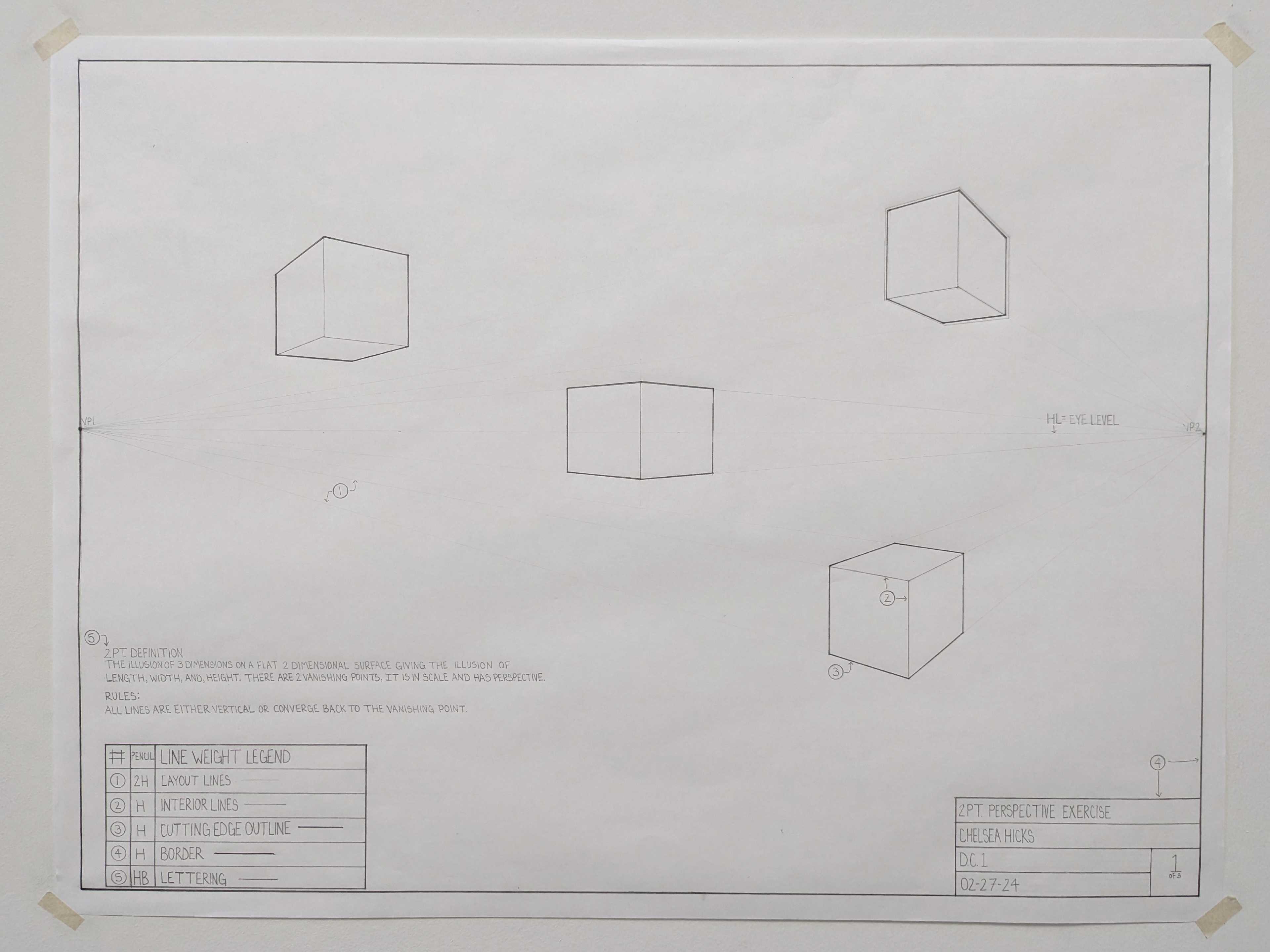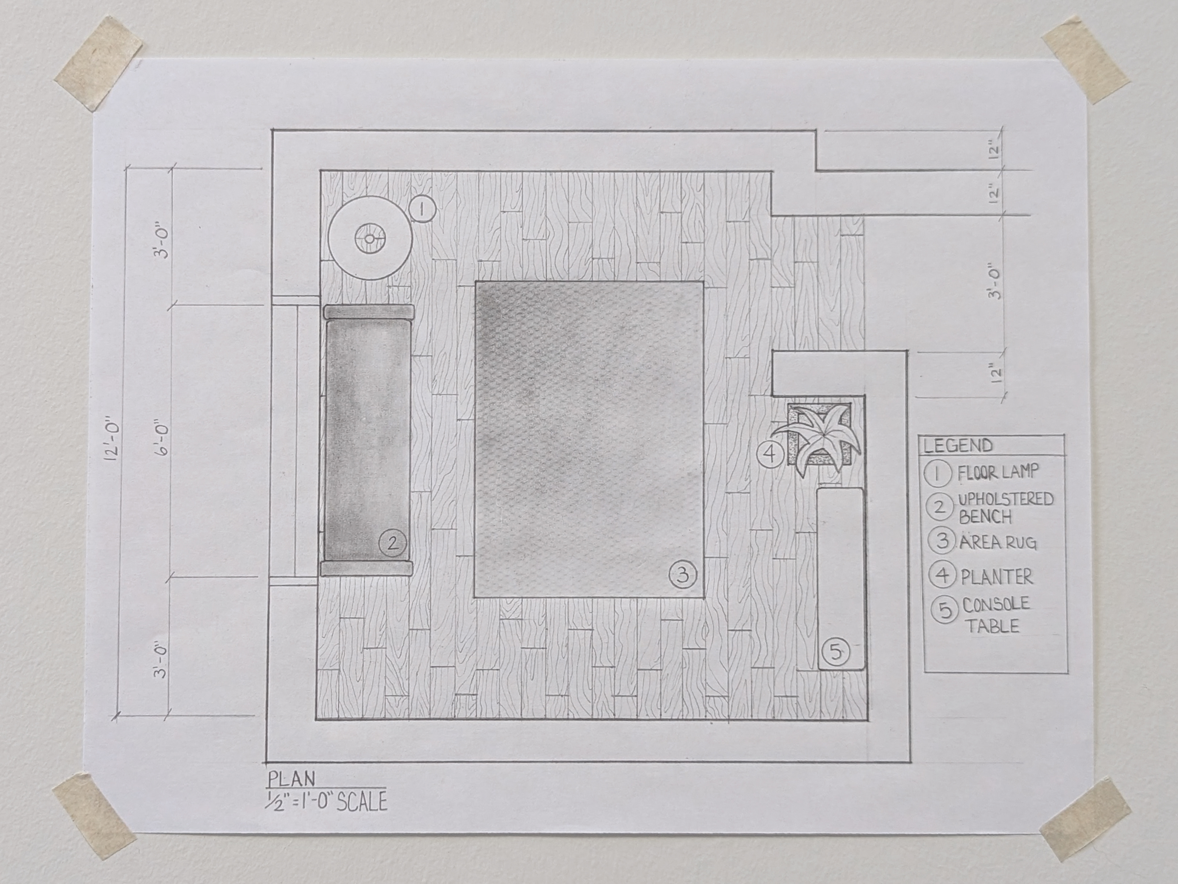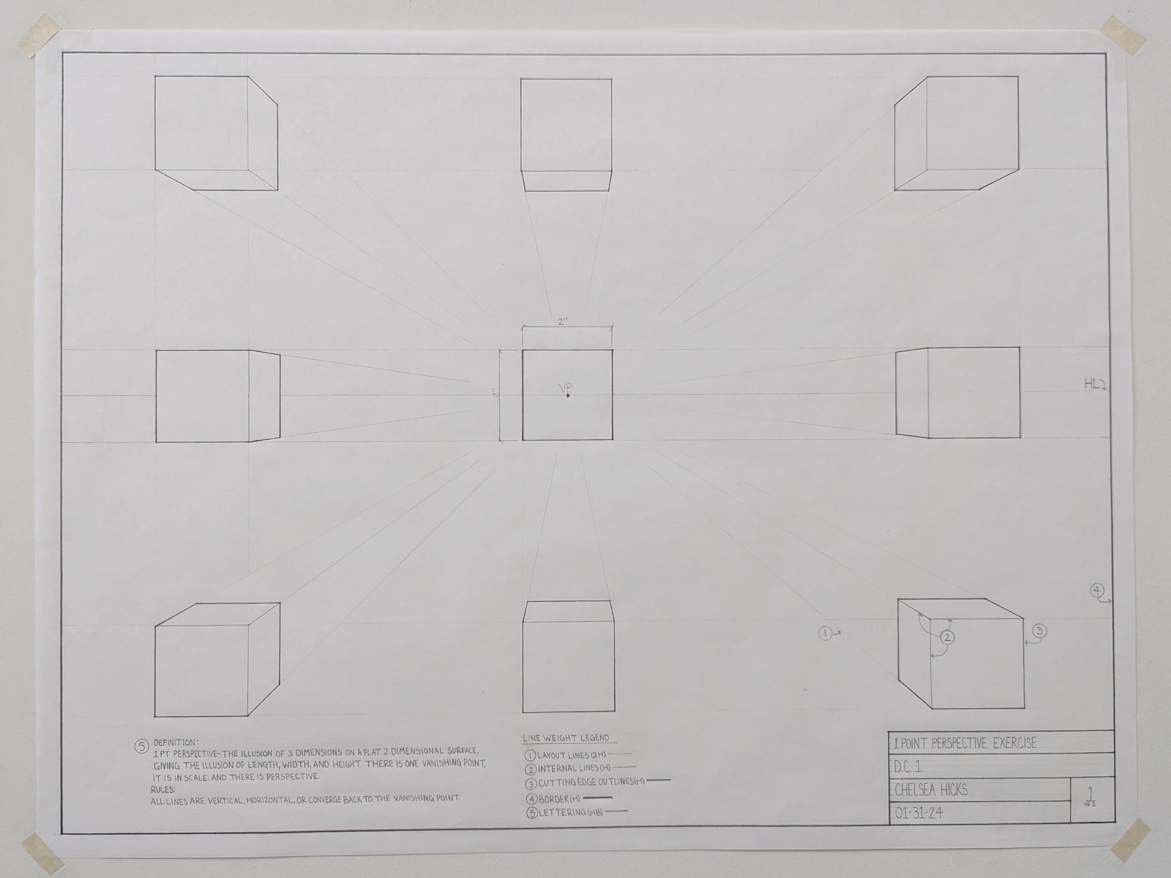 DC I was the first course in the program that taught hand drafting and drawing. The drawing are in black and white and are based on U.S. standard measurements. The exercises throughout the quarter introduced concepts such as composition, design, contour and line, proportion and scale, plan and section, perspective, form and space, as well as tone and shadows.