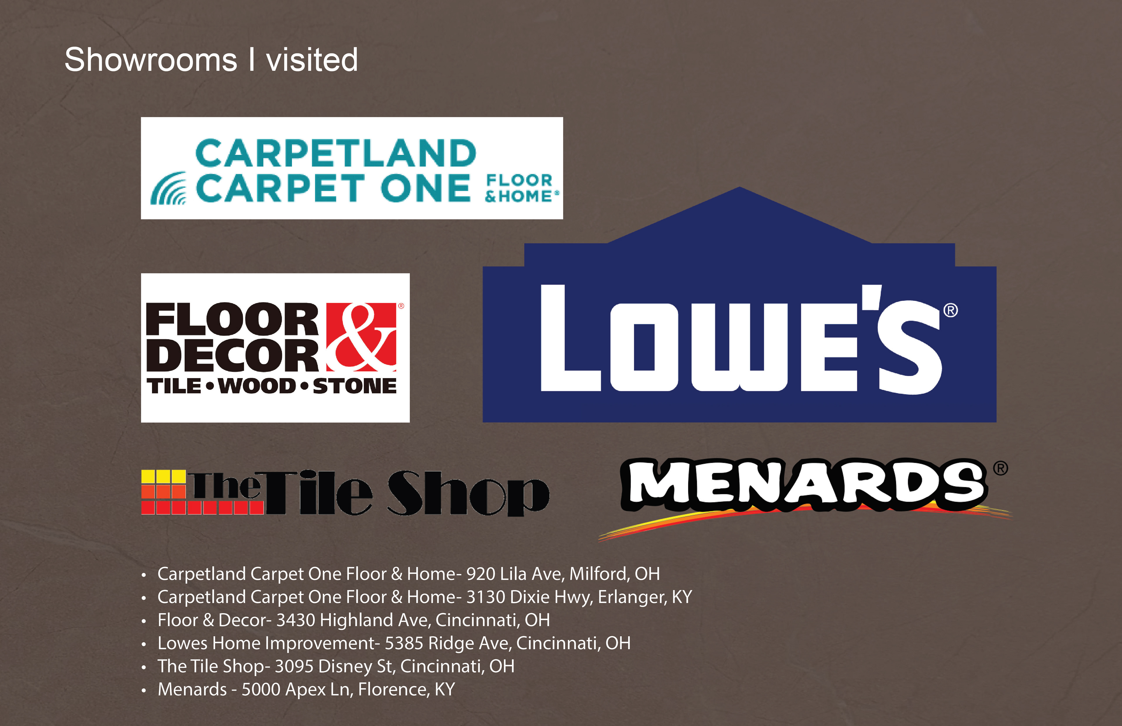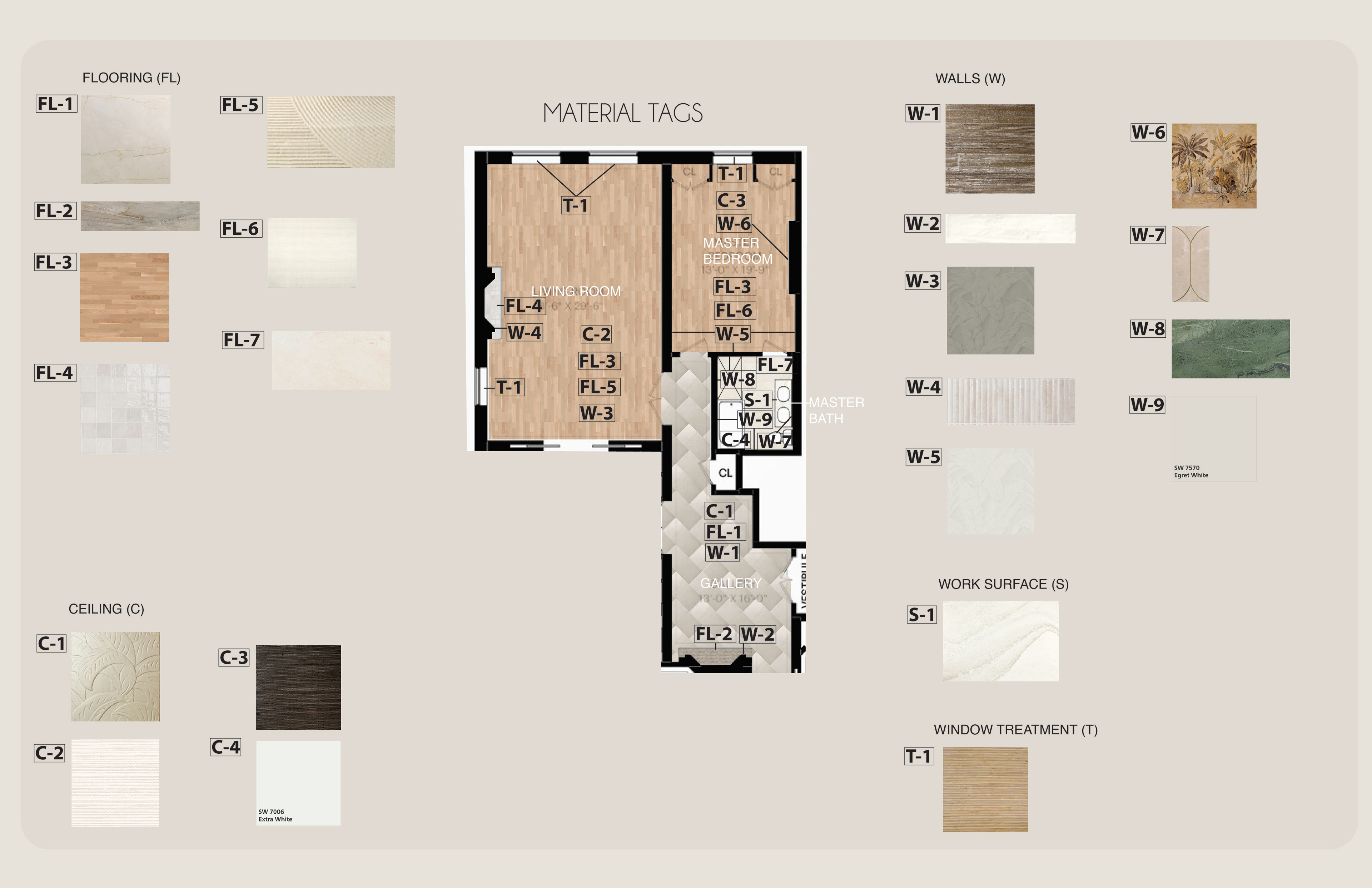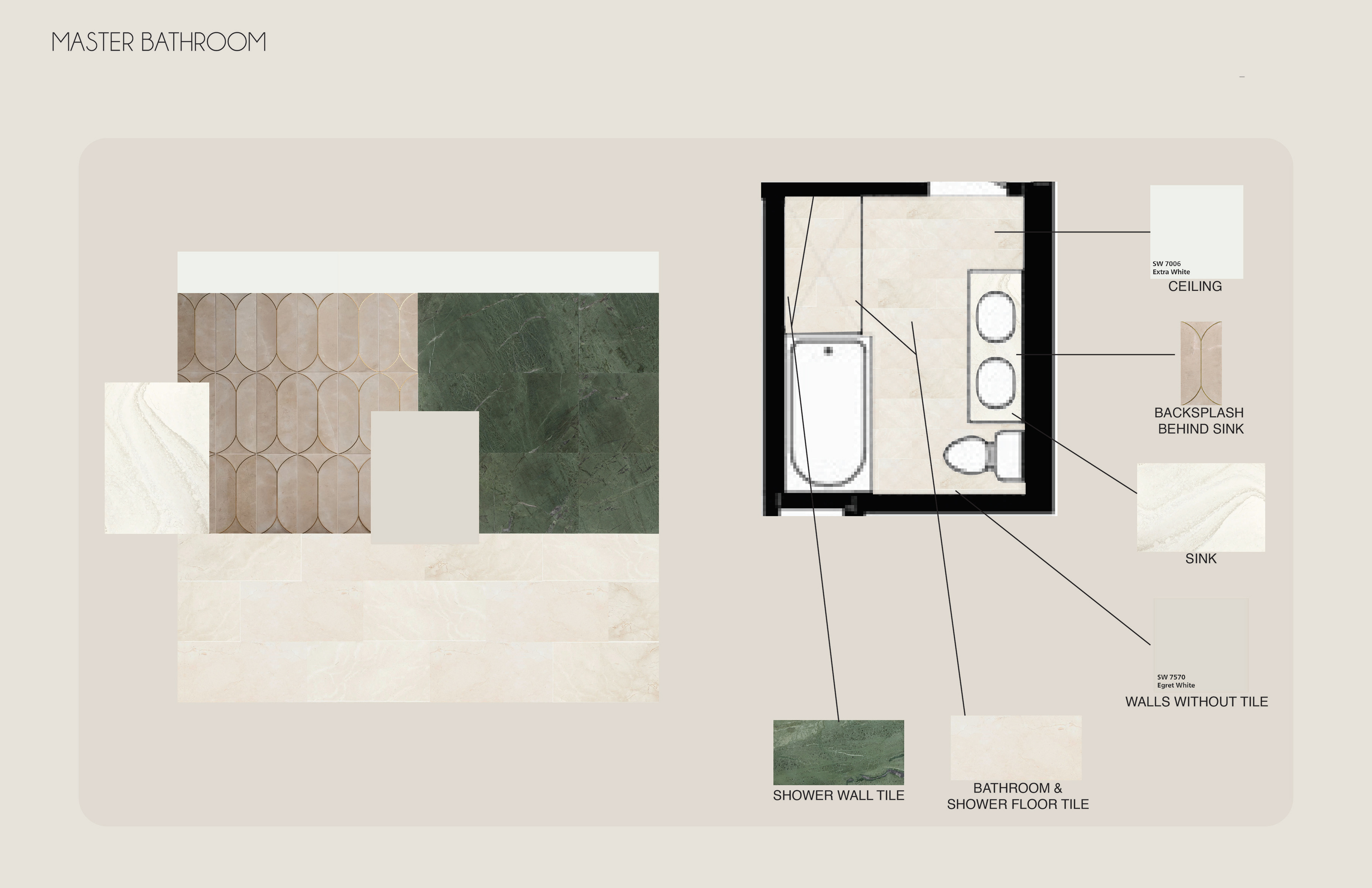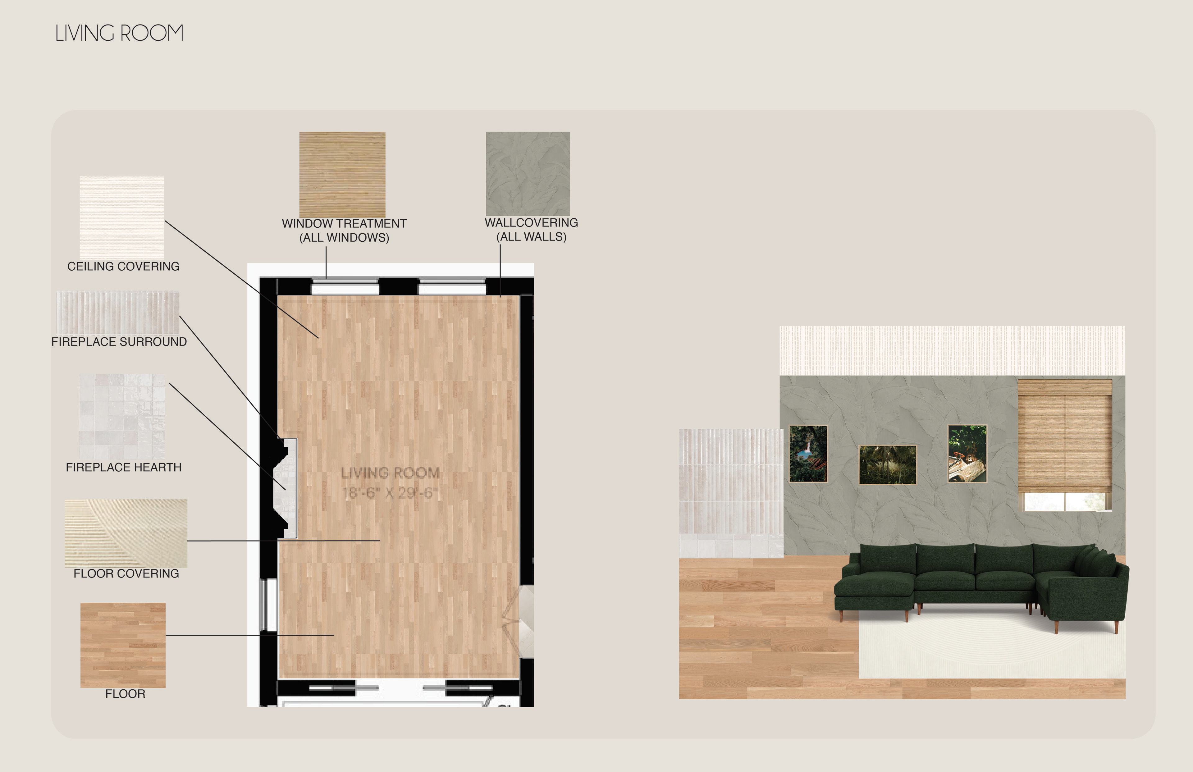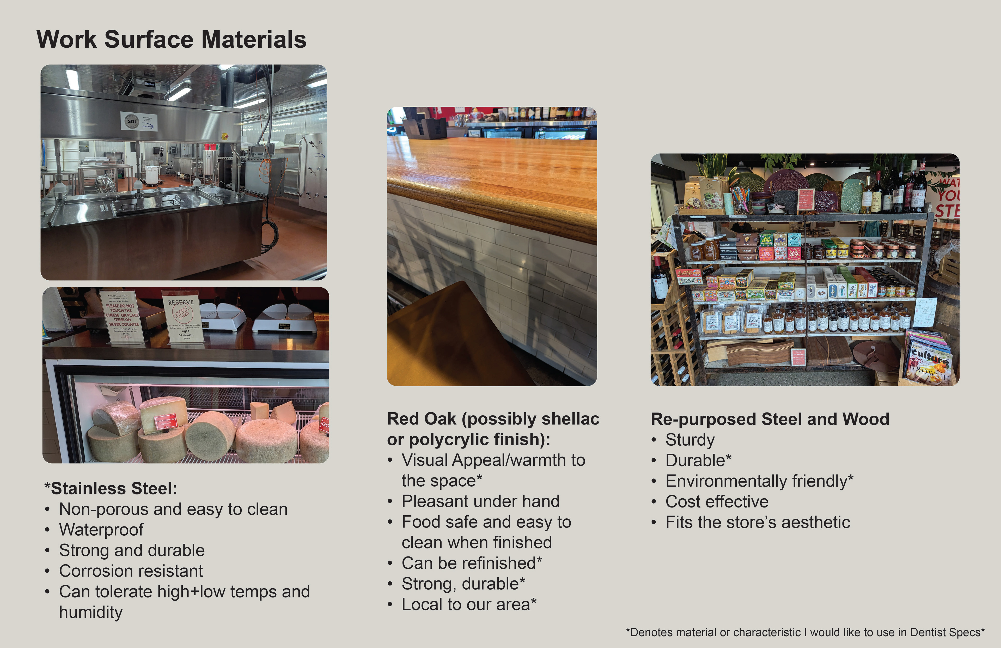 Surface Materials was a deep dive into selecting and speccing materials for both residential and commercial spaces throughout various projects during the quarter. For the sake of space and presentation, the attached spec sheets were left off but all documentation was turned in as part of the projects. There was an emphasis on exploration into sustainable and innovative materials for multiple projects.